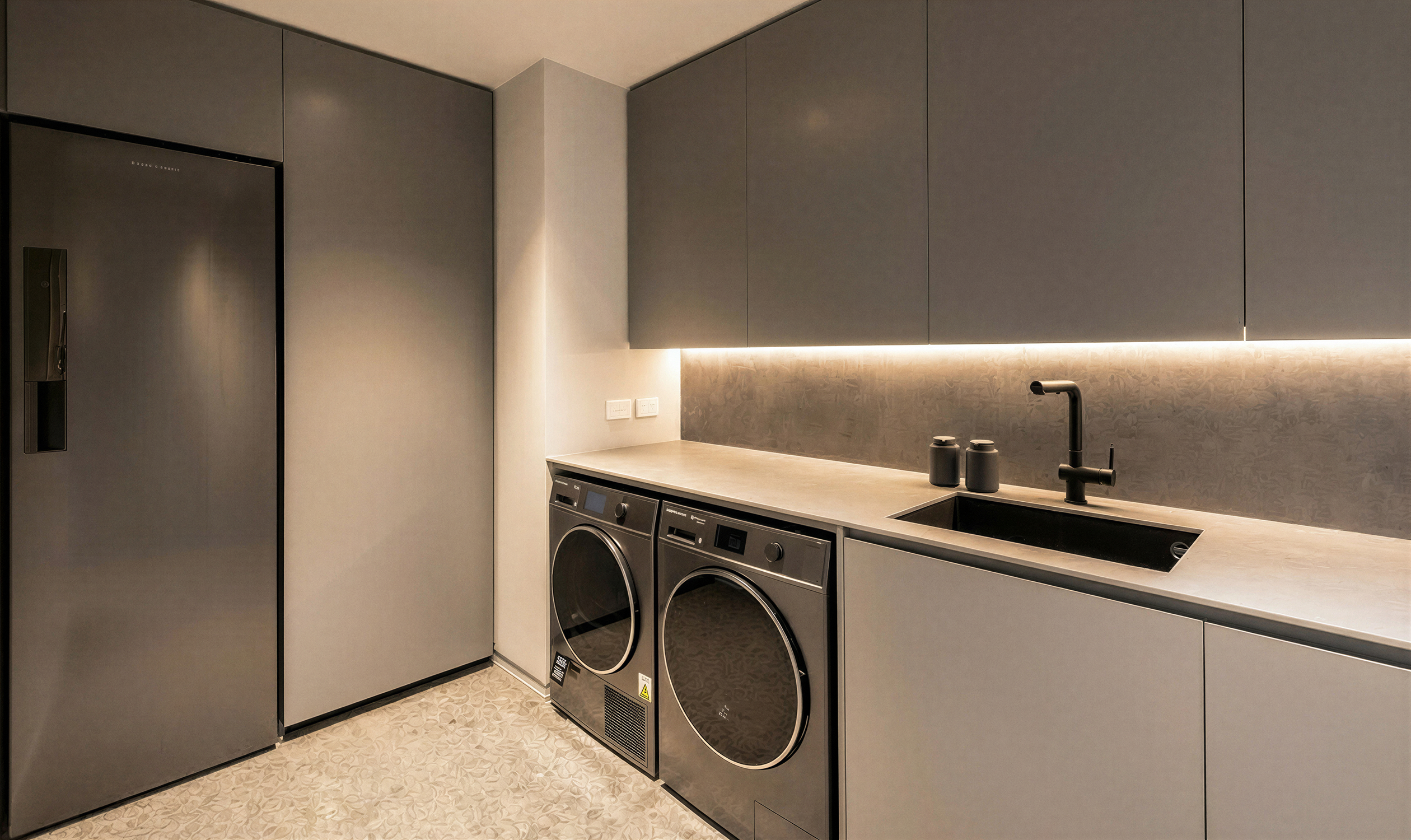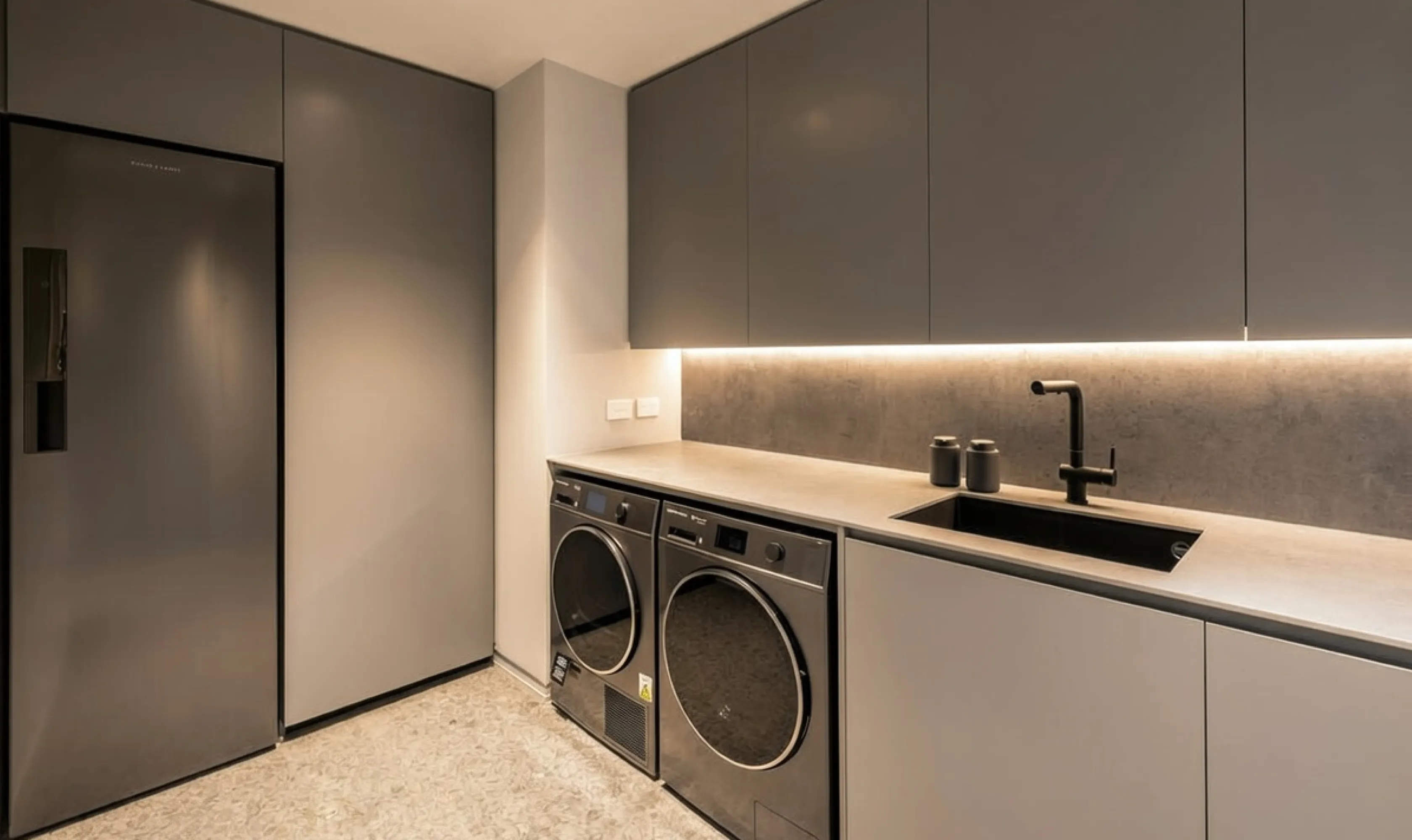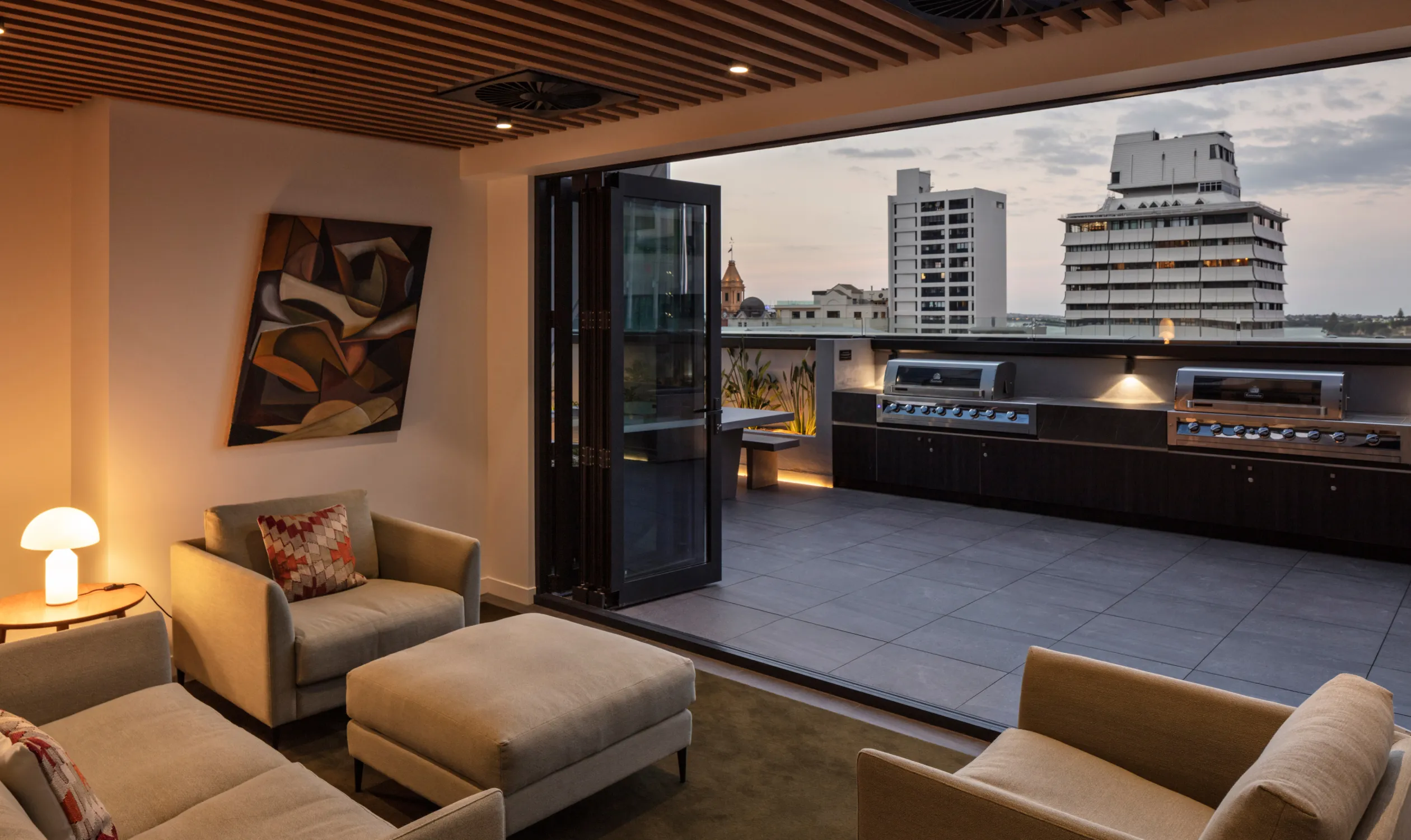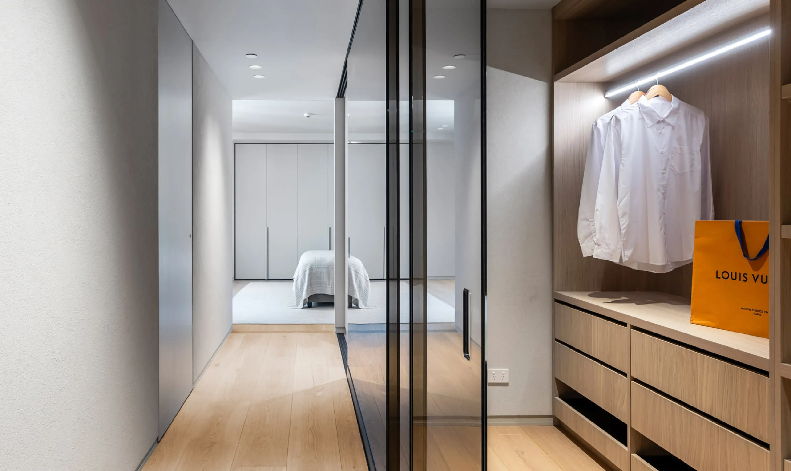 As you enter the living room, you find yourself encapsulated in breathtaking cityscapes that stream through floor-to-ceiling windows, complemented by light timber hues and a gourmet marble kitchen, complete with Gaggenau appliances, a cleverly-hidden butler’s pantry and wine bar.